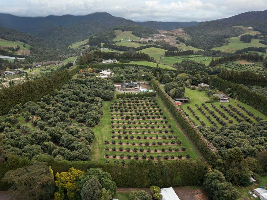 Their search for the right lifestyle property eventually led them to a site in the hills of Katikati, with 320 avocado trees. “It had a beautiful building platform with views out to Mount Maunganui and the ocean, which really appealed to us,” says Carol.
