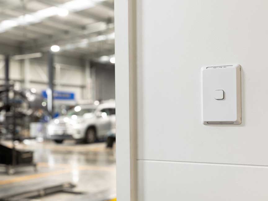 With so much to consider in this build, it might have been easy to overlook sustainability and energy efficiency, but Rob and the Kinetic Electrical team made sure this was built into the electrical plan from the outset as well. A Schneider Electric EVlink charger was included in the workshop so the team can swiftly and easily charge any EVs that come in, and PIR sensors were included in the bathroom walkways, toilets and shower room to ensure lights are only on in those areas when motion is detected to help save power.