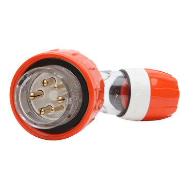 56 Series Plug Angled 16A 500V 3-Phase 6-Round Pin IP66, Orange