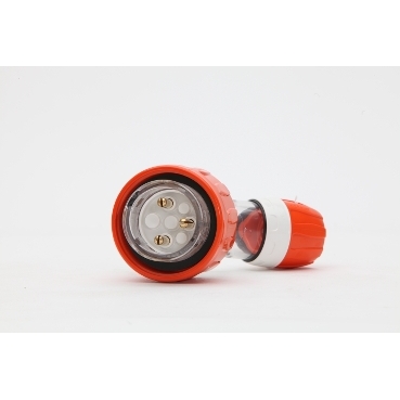 56 Series Plug Angled 20A 250V 1-Phase 3-Round Pin IP66 PBT, Chem Res Orange