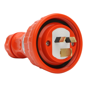 56 Series Plug Straight 15A 250V 1-Phase 3-Flat Pin IP66 PBT | Chemical Resistant Orange