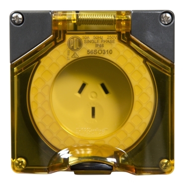 56 Series Socket 10A 250V 1-Phase 3-Flat Pin IP66 | Chemical Resistant Grey