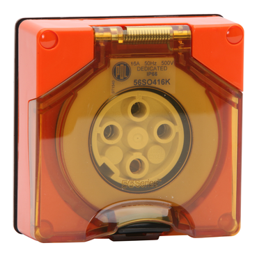 56 Series Socket 16A 500V 3-Phase 4-Round Pin Keyway IP66