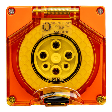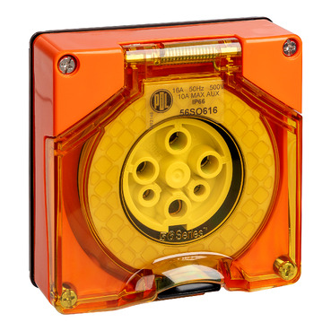 56 Series Socket 16A 500V 3-Phase 6-Round Pin IP66 | Chemical Resistant Orange
