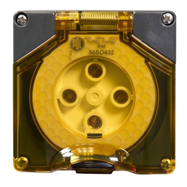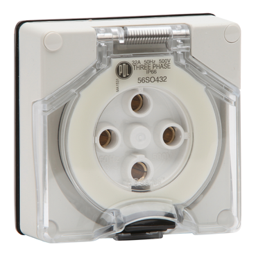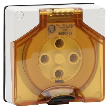 56 Series Socket 32A 500V 3-Phase 4-Round Pin IP66 | Chemical Resistant Grey