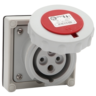 56 Series Socket CEE 16A 400V 3-Phase 4-Round Pin IP57 Red | Grey