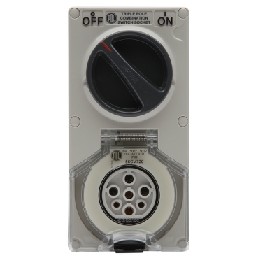 56 Series Switched Socket 16A 500V 7-Round Pin 2-Gang 3-Pole IP66 | Chemical Resistant Orange