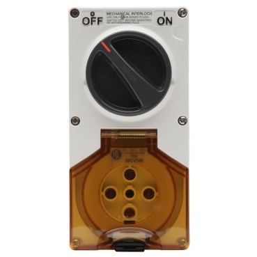56 Series Switched Socket 40A, 500V, 5-Round Pin, 2-Gang, 3-Pole, IP66 | Grey