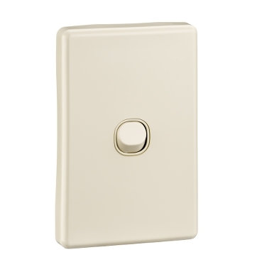 Switch assembly. C2000 cover plate, grid and switch mechanism are included. Suitable for 1-gang vertical installations. Assembled with plate. Clipsal C2000. Colour: White Electric Rated current: 10AX. Operating voltage 250V a.c. 50Hz. Note: Requires installation by an appropriately licenced electrician.