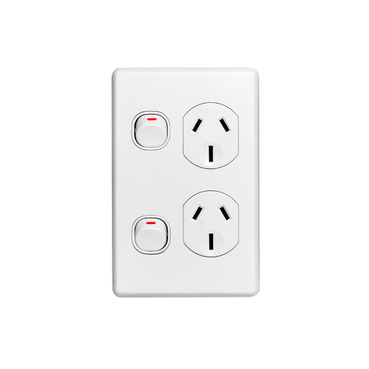 C2000 Series Socket Outlet Switch Double Vertical, 250V, 15A