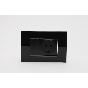 Modena and Strato 800 Series Fully Assembled Switch Socket Module Single, Horizontal, 10A, 2-Gang | Black