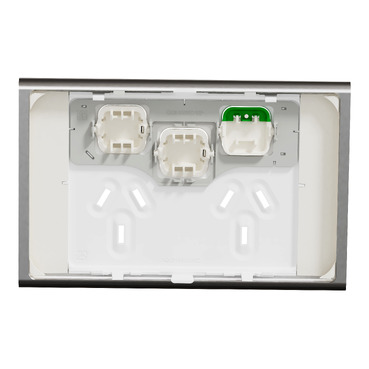 The Iconic Styl Double Power Point Skin with extra switch fits to its compatible Iconic Grid Plate. Once the Grid Plate is installed by an electrician, it's safe to change the skins, by simply clipping off the existing skin for a new Iconic skin design.