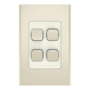The Iconic Styl 4 gang Switch Skin can be vertically or horizontally mounted to its compatible Iconic standard Grid Plate. Once the Grid Plate is installed by an electrician, it's safe to change the skins, by simply clipping off the existing skin for a new Iconic skin design.