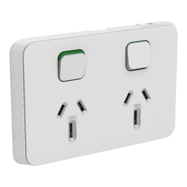 PDL Iconic skins allow you to update the look of your switches quickly, easily and safely. The PDL Iconic Double Power Point skin features twin switched outlets. Horizontally mounted, the rockers feature a green strip indicator so you can see from a distance when the socket is turned on.