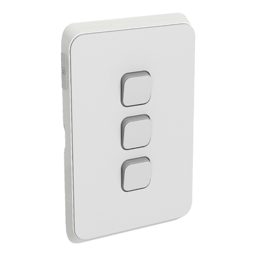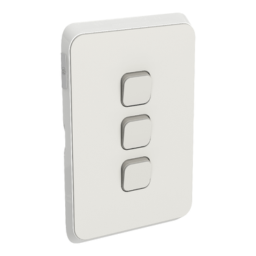 This PDL 3 Gang Switch Plate Skin is vertically mounted and available in four colour options. It offers a choice of edges; solid vivid white or translucent edges that meld with its surroundings.