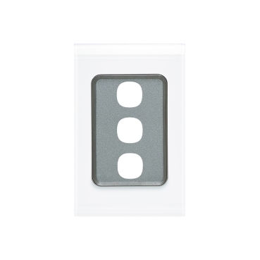Switch grid and cover. Switch mechanisms are purchased separately. Suitable for 3-gang installations. Clipsal Saturn Horizon. Colour: Horizon Silver