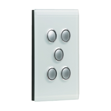 Switch grid and cover. Switch mechanisms are purchased separately. Suitable for 5-gang installations. Clipsal Saturn Horizon. Colour: Horizon Silver