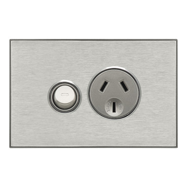 Socket outlet assembly for horizontal installations. Single switched socket. Saturn cover and socket grid are included. Clipsal Saturn Horizon. Colour: Horizon Silver Rated current: 10A Operating voltage 250V a.c. 50Hz Note: Requires installation by an appropriately licenced electrician.