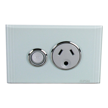 Socket outlet assembly for horizontal installations. Single switched socket with round earth pin for lighting. Saturn cover and socket grid are included. Clipsal Saturn Horizon. Colour: Horizon Silver Rated current: 10A Operating voltage 250V a.c. 50Hz Note: Requires installation by an appropriately licenced electrician.