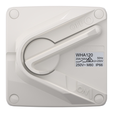 The WHA Series of Weathershield lever switches are a robust range of switches suitable for many external application. There are various configurations within the range such as, single and double pole switches with various amperage ranges from 10 to 35 Amps. The compact design offers a neat and tidy finish ideal for outdoor installations. The switch has an IP66 rating to prevent dust and water ingress.
