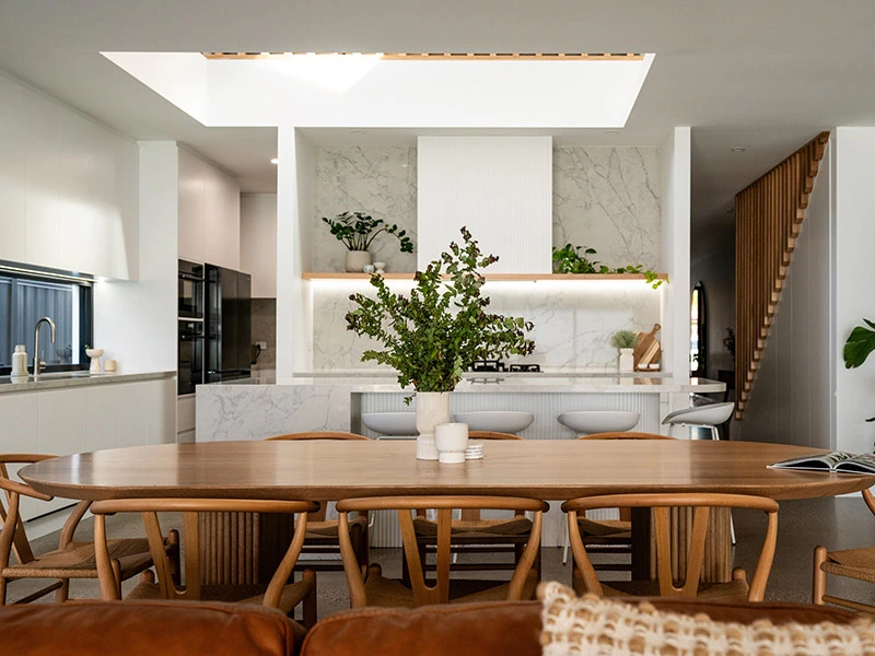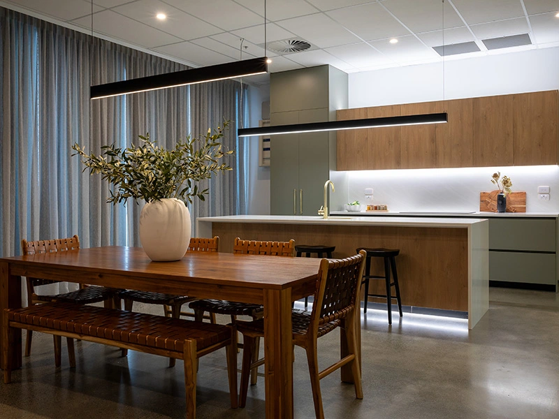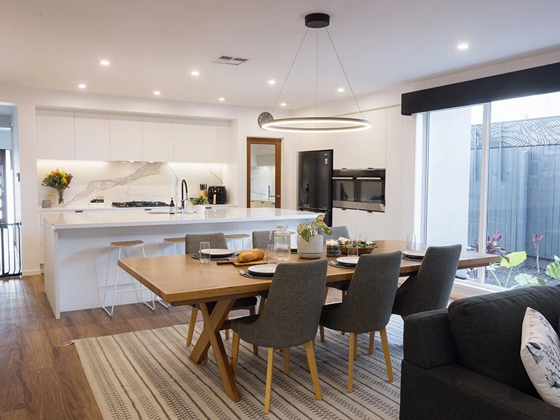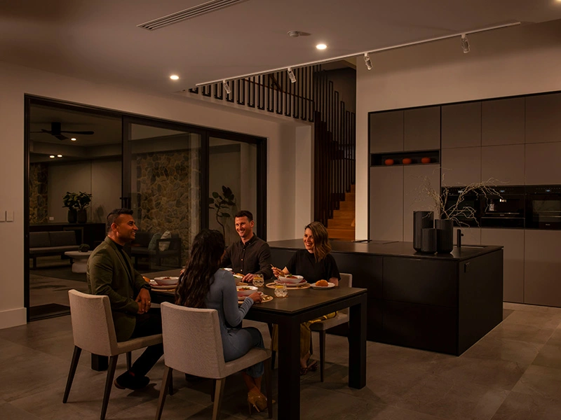 - Set the mood for every meal with adjustable lighting using PDL LED downlights controlled by a Wiser dimmer switch.