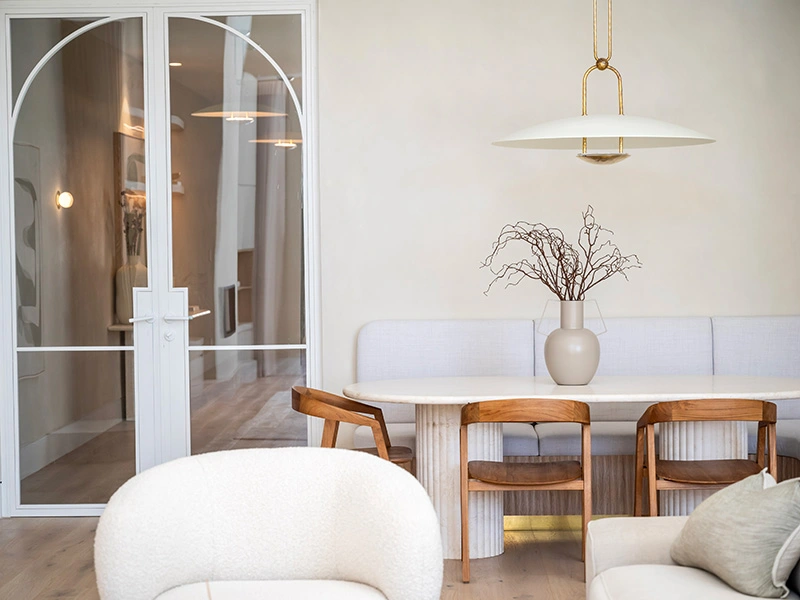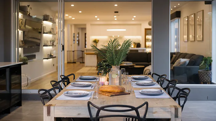 A warm and inviting dining space that blends ambiance, functionality, and smart automation—perfect for intimate dinners, family gatherings, and memorable celebrations.